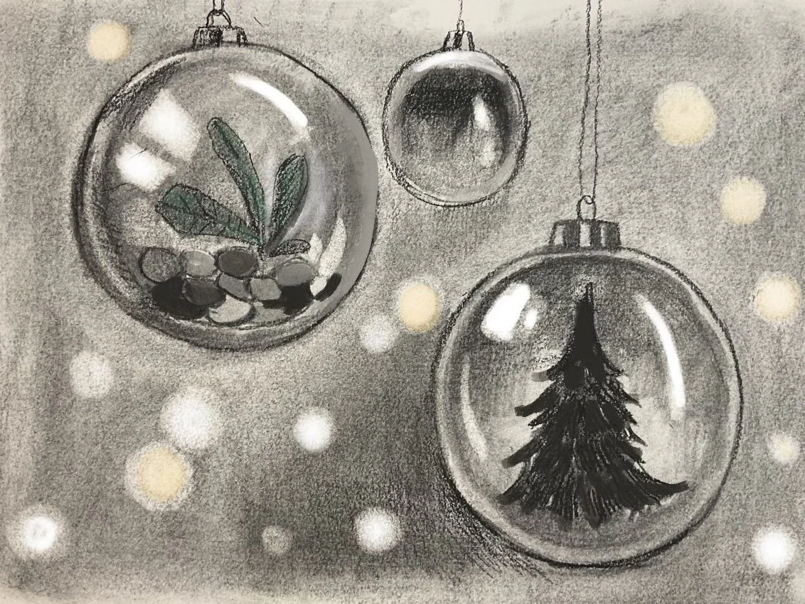 We invite you to explore the contrast and depth that charcoal offers, creating ornaments that tell a story of winter enchantment. Whether you're a seasoned charcoal artist or discovering its magic for the first time, let the allure of the holiday season guide your hands as you craft ornaments that radiate both warmth and sophistication.